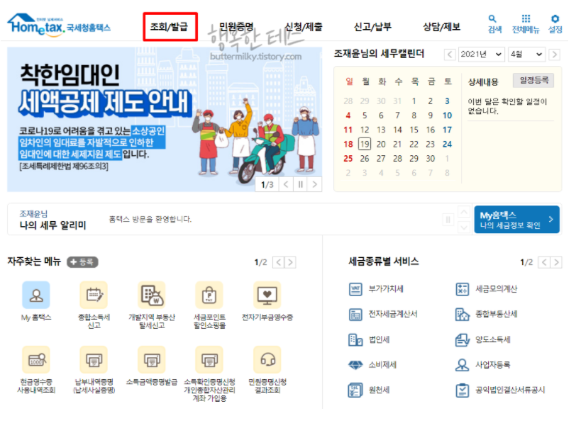 홈택스(국세청)를 통한 조회 방법