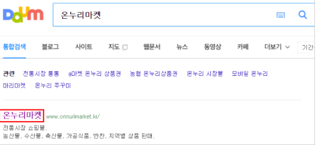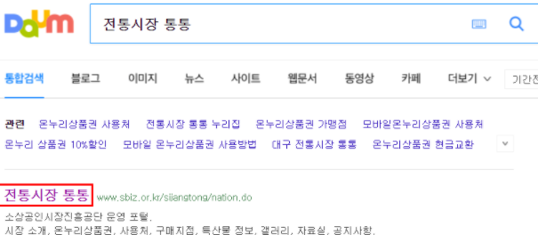 1. 포털사이트에서 온누리 마켓을 검색한다.