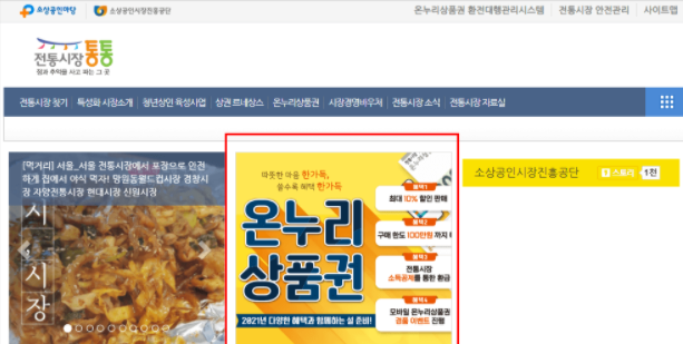 2. 전통시장 통통 메인화면에서 온누리상품권 메뉴를 클릭