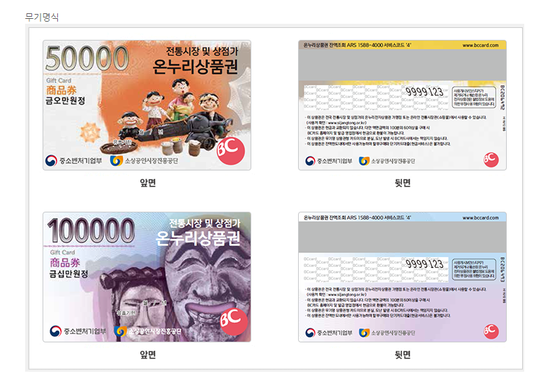 목적으로 2009년도에 만들어서 사용되고 있는 상품권입니다.