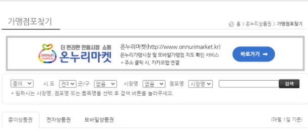 온누리마켓을 이용하여 온누리상품권 사용처 조회하는 방법