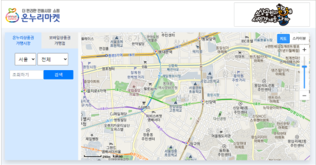 2.온누리마켓 메인화면에서 원하는 지역의 전통시장을 검색한다.