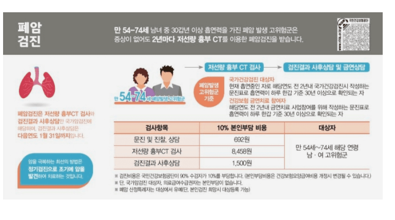 폐암 국가 건강검진은 30년 이상 하루에 한 갑 이상의