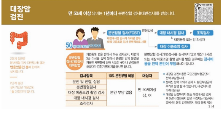 대장암 국가 검진은 1년마다 50세 이상 남녀 누구나 받을 수 있으며
