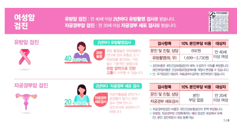 유방암은 2년마다 40세 이상부터 진행하고 있으며,