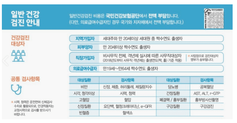 일반 건강검진은 2년 주기로 건강보험공단에서
