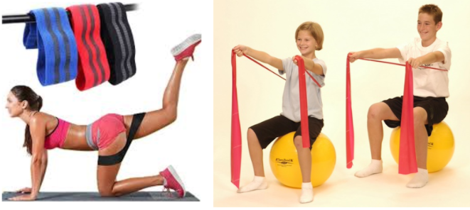 굉장히 많은 사람들이 고무줄 같이 생긴 밴드로 팔과 다리 복근 등