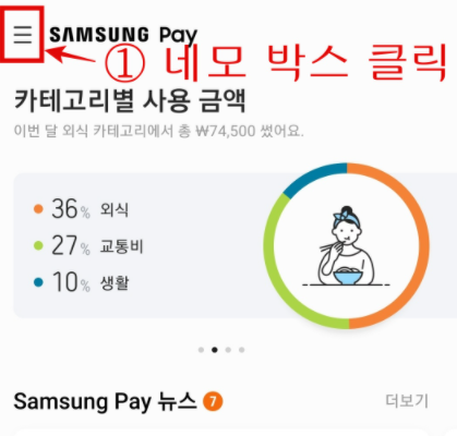 삼성페이 어플을 실행합니다.