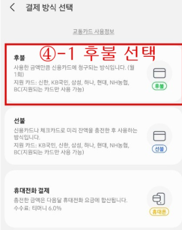 후불 결제는 후불 교통카드 기능이 있는 신용카드만 사용이 가능합니다.
