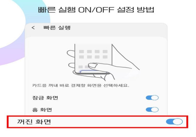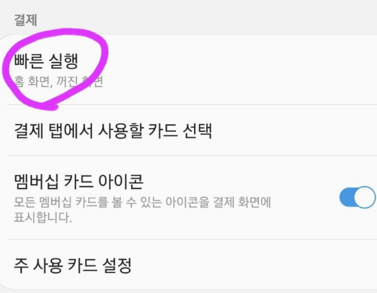 삼성페이 어플 안에서 삼성페이 빠른 실행에 대한