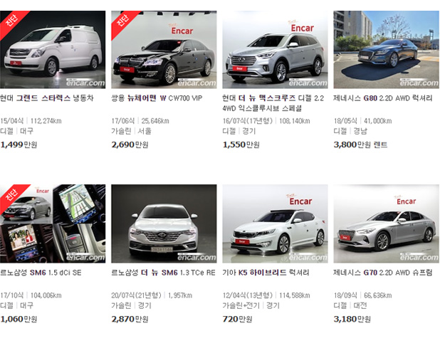 우리나라는 현재 SK엔카, K 카, 보배드림, 마이 중고차 등