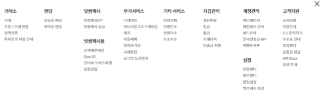 빗썸 홈페이지 메뉴에서 입출금을 클릭후,