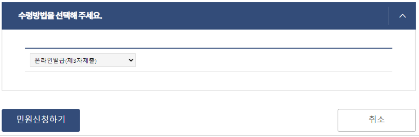 (표시/선택 발급)을 선택하신 후 수령방법을