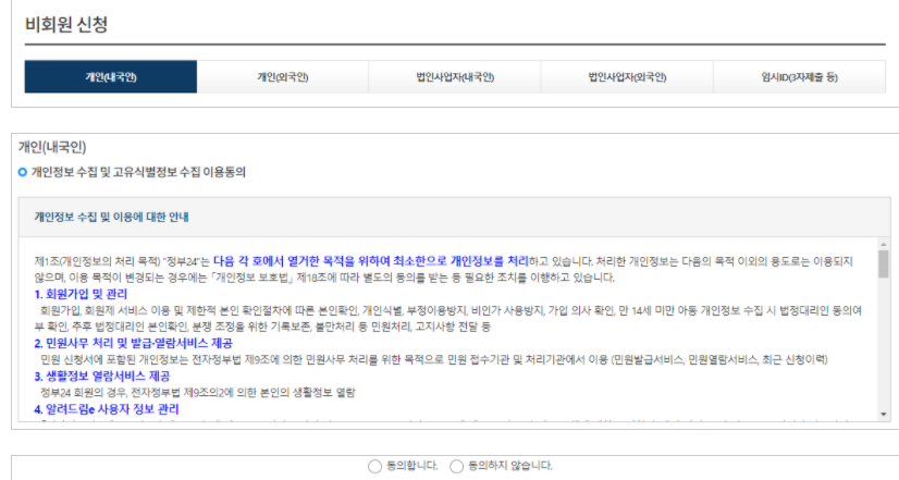 개인정보 수집 및 고유 식별정보 수집 이용 동의를