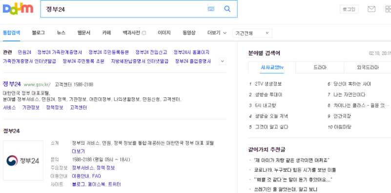 검색 포털에 " 정부 24"를 검색하는 것입니다.