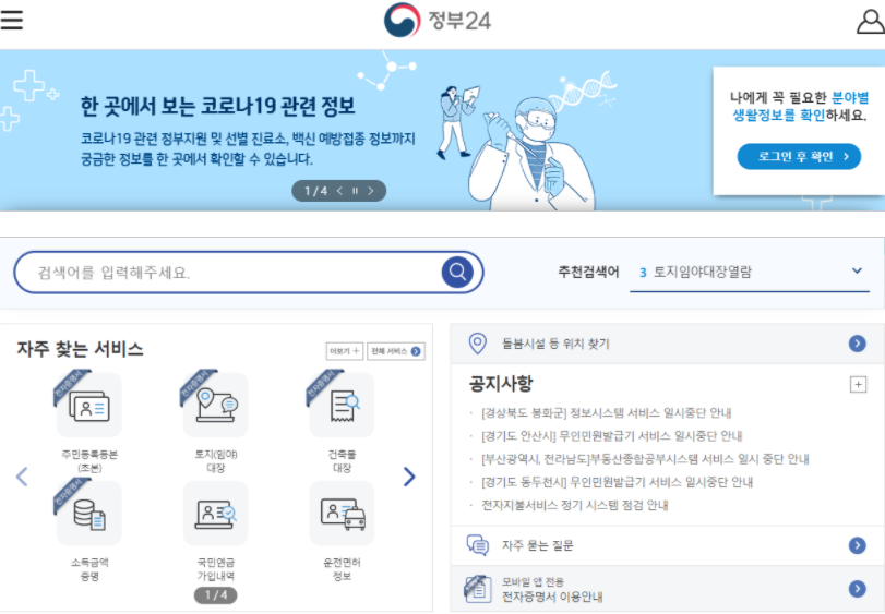 정부 24는 주민센터에 가지 않더라도 각종 서류들을