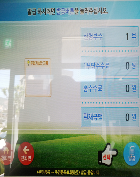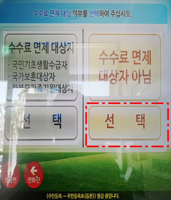 주민등록등본 무인발급기 첫 화면 선택 방법