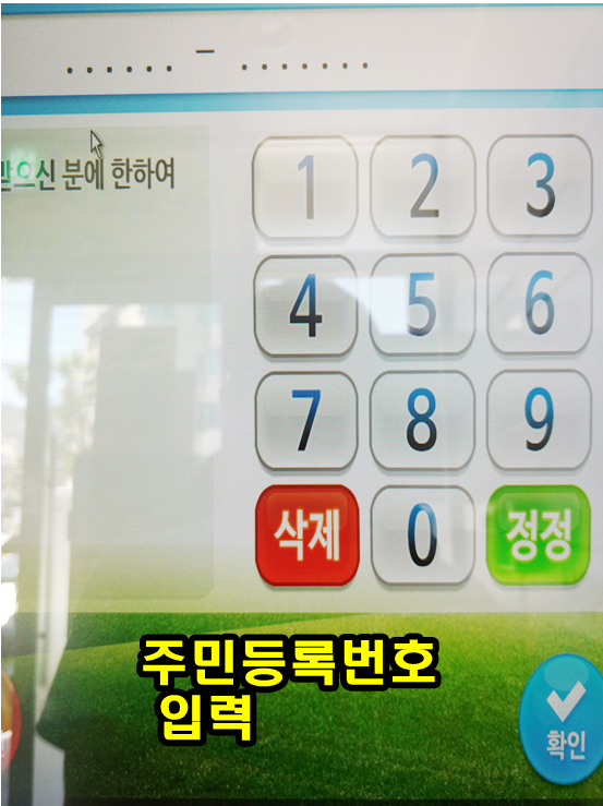 (핸드폰 번호가 아닌 주민등록번호를 누른 후 확인을 누릅니다.)