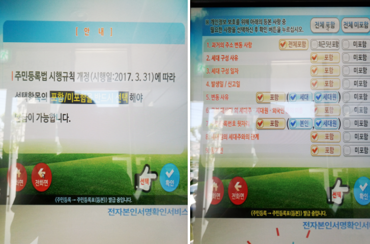 주민등록번호 무인발급기 ( 초본?! 등본?! )