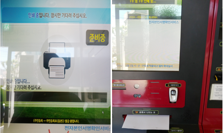 무인발급기를 통한 주민등록등본 발급이 끝이 납니다.