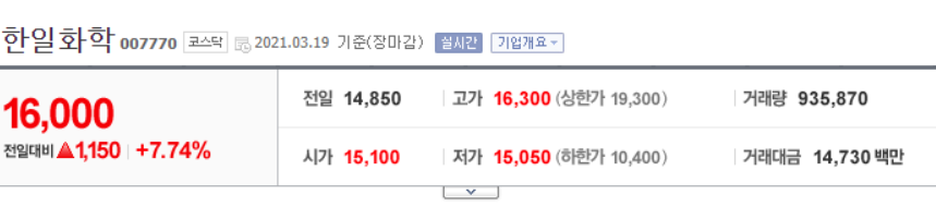 윤석열 테마주 ( 한일화학 )