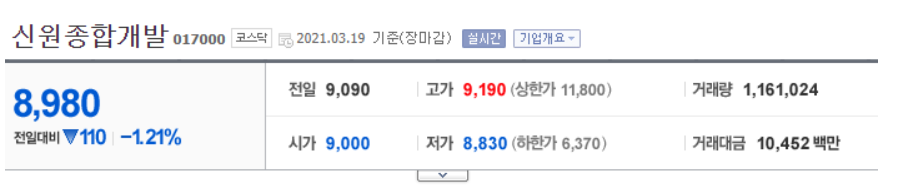 윤석열 관련주 ( 신원종합개발 )